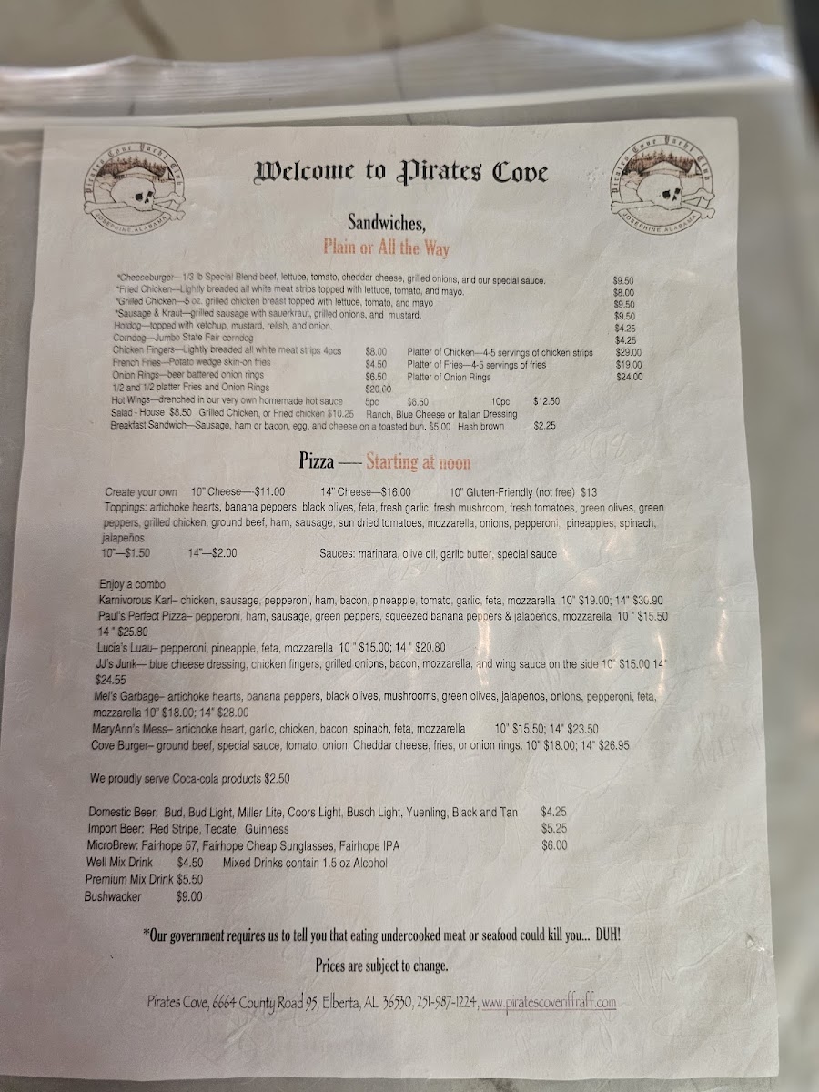 Welcome to Pirates Cove, a hidden gem nestled along the tranquil shores of Elberta, AL. This charming waterfront dive bar exudes an inviting atmosphere, perfect for food lovers and families alike. Whether you arrive by boat or car, the cove welcomes both two-legged and four-legged friends.